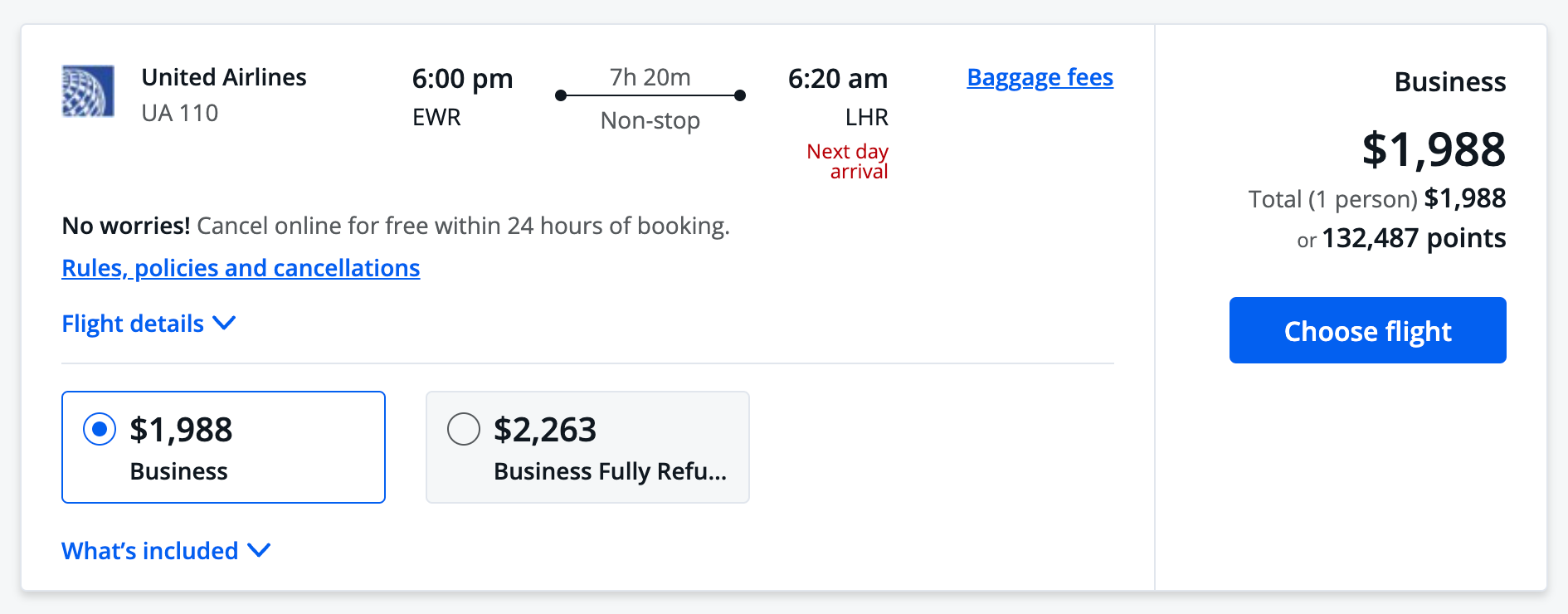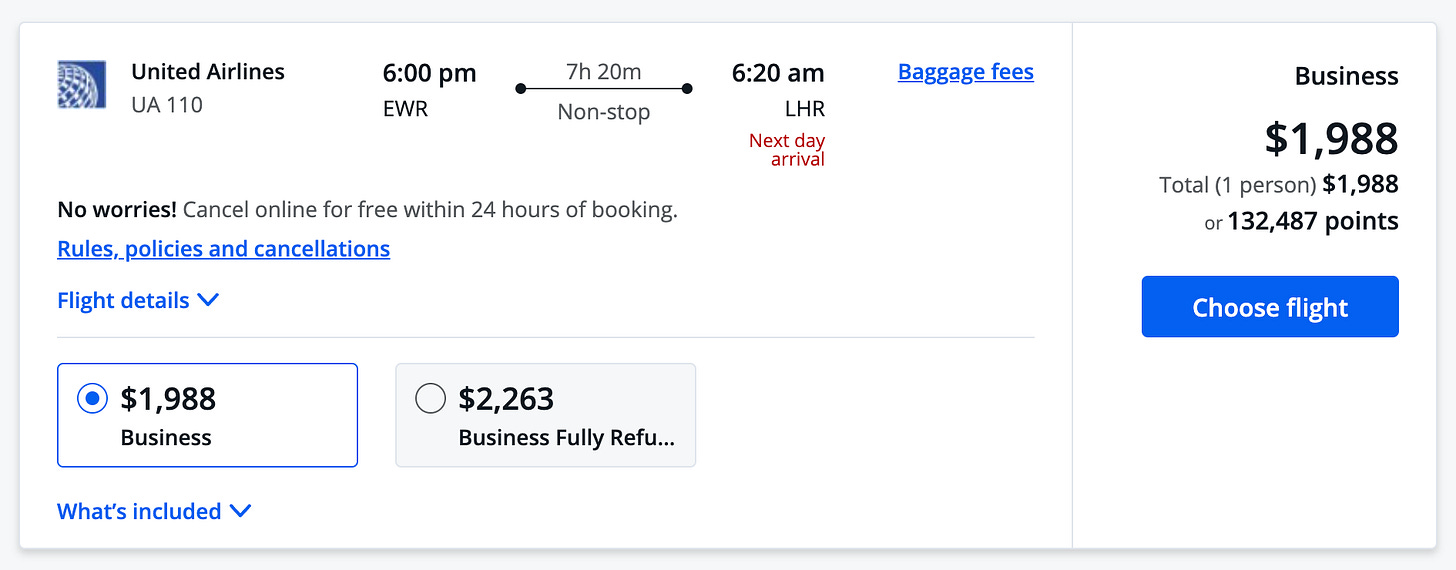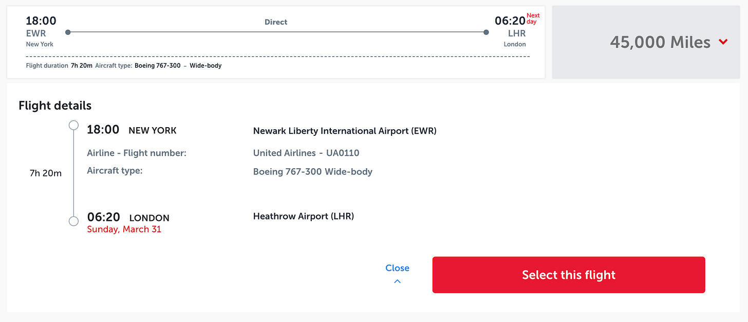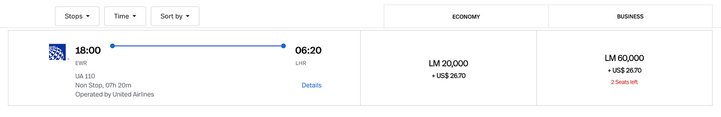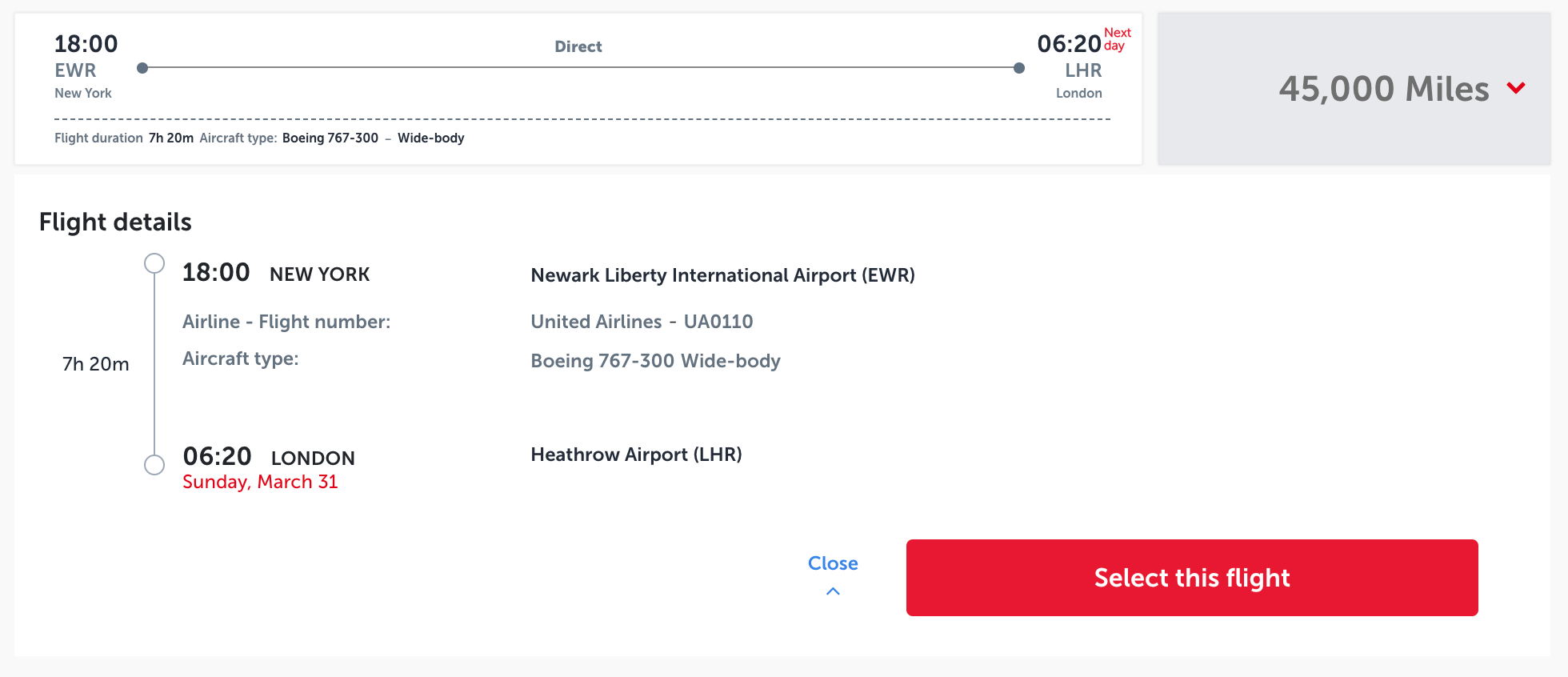 By the way, that March 30th EWR-LHR flight I’ve been using as my example? That’s a real flight with actual award availability as of 6am this morning. Good points deals often get snapped up fast, so take a look if you’re interested!